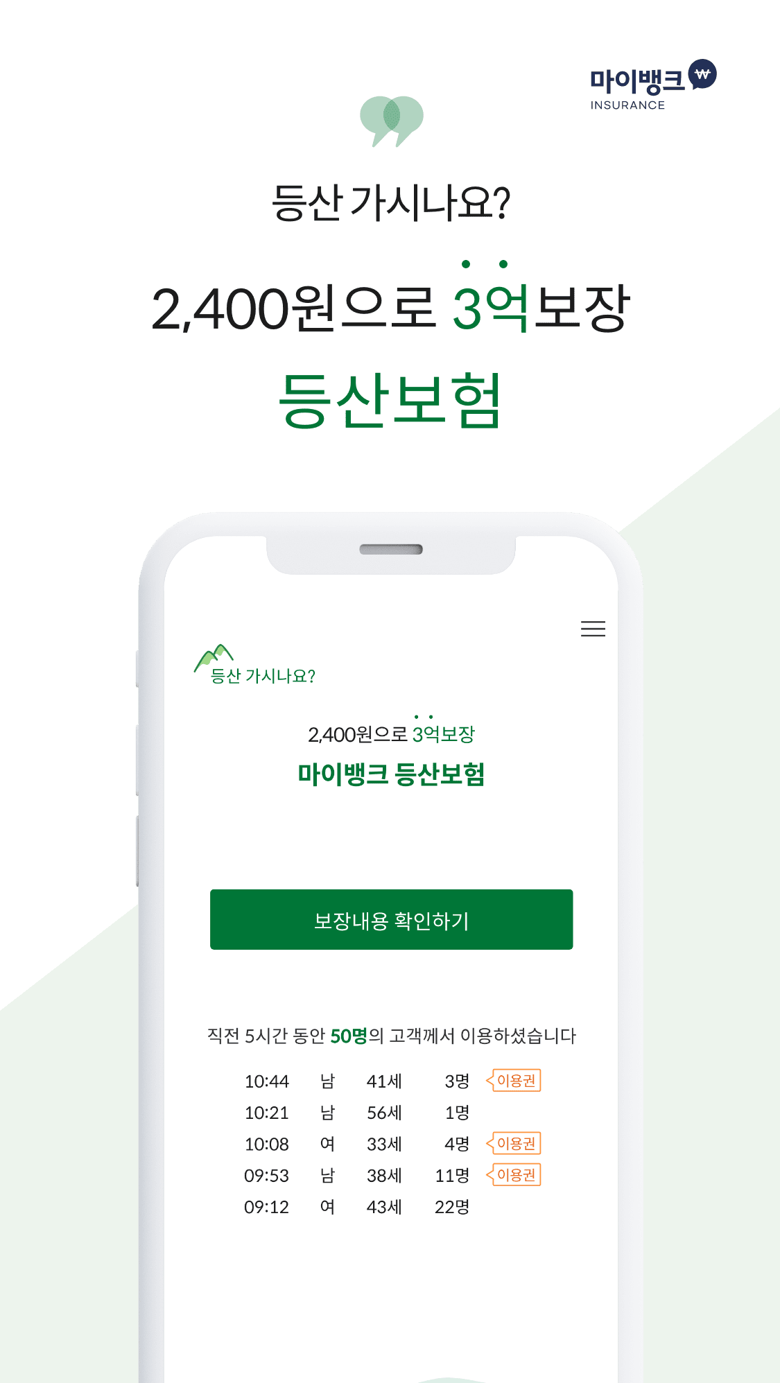 등산 가시나요?2,400원으로 3억보장 등산보험
